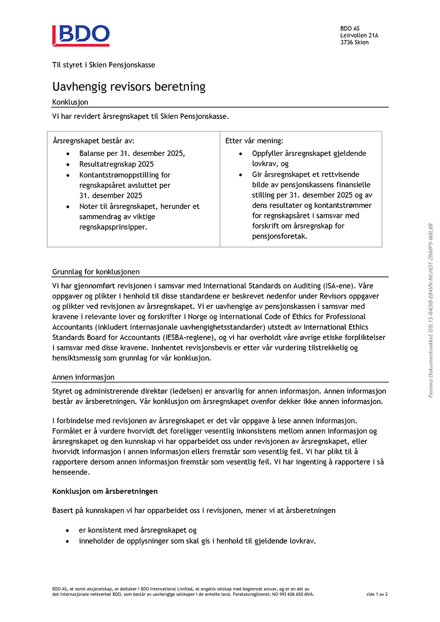 Avkastning Skien pensjonskasse 2025