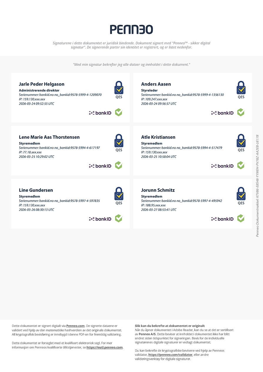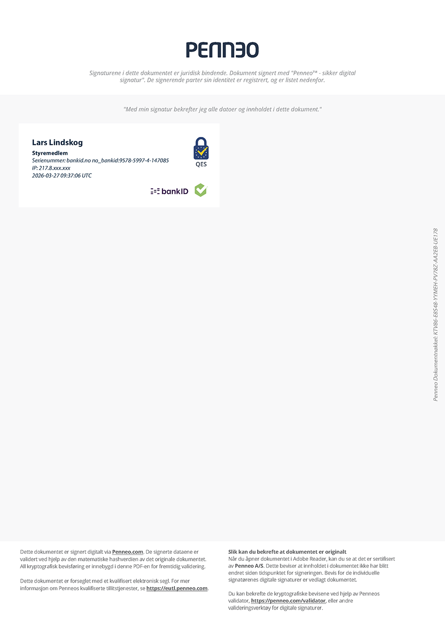 Administrerende direktør har levert sin årlige rapport om internkontroll til styret og internrevisor PwC har levert sin årsrapport for 2025 til styret. Compliancefunksjonen har levert rapport til styret hvert halvår og styret har gjennomgått og vedtatt ORA (egenvurdering av risiko)